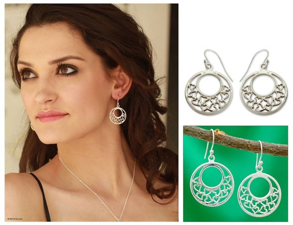 "Sterling hearts dance in a joyous design by India's Arunima. Crafted by hand, these romantic earrings celebrate love.