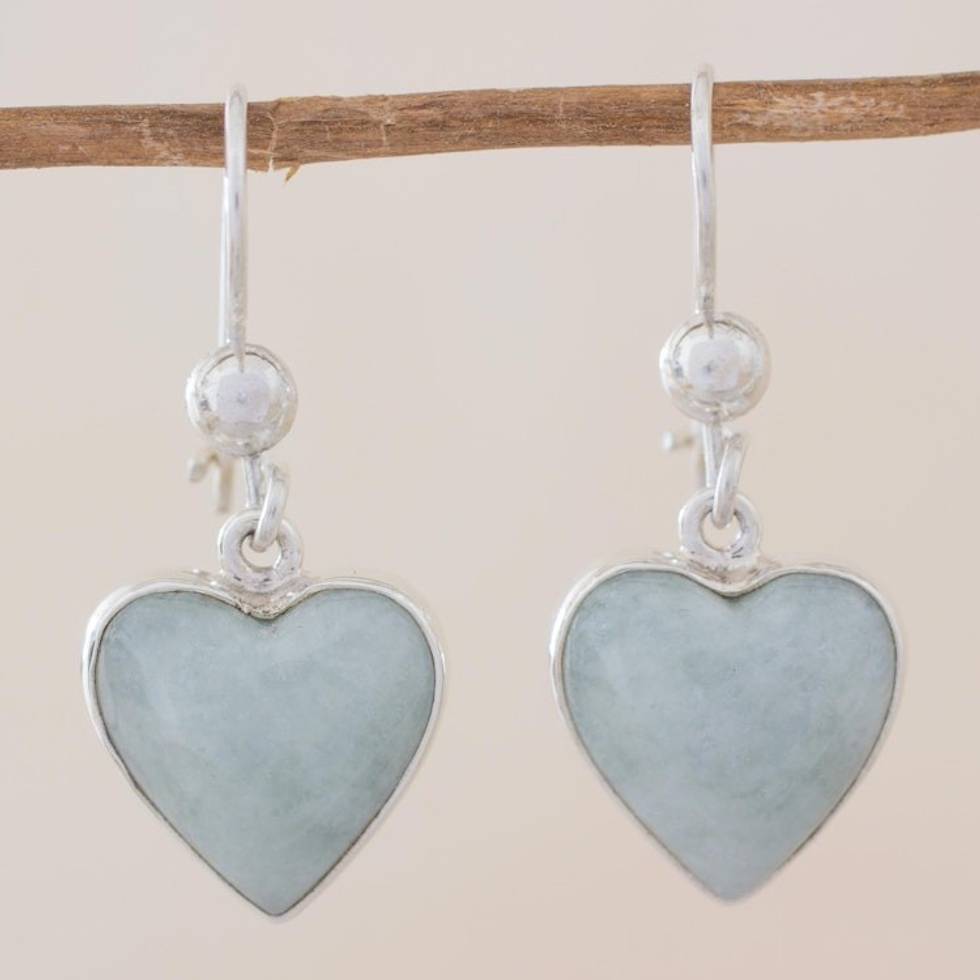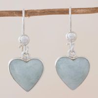 Sterling Silver Heart Earrings with Light Green Jade 'Innocent Heart' Item ID: 2669933766