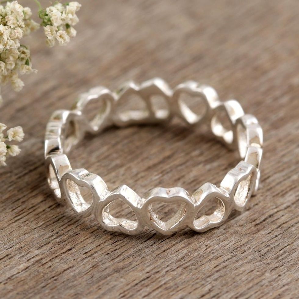 Sterling Silver Heart-Motif Band Ring 'Garland of Hearts' Item ID: 2671788588