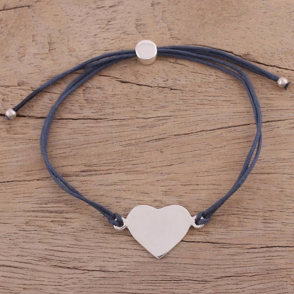 Sterling Silver Heart Pendant Bracelet in Navy from India 'Heartfelt Shimmer in Navy' Item ID: 2671791013