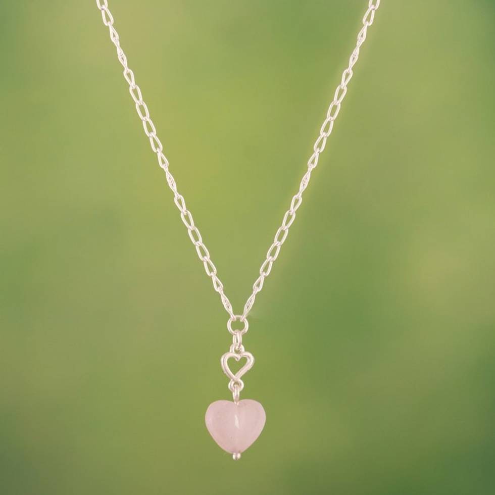 Sterling Silver Heart Pendant Necklace with Rose Quartz 'Tiny Hearts' Item ID: 2671400893