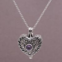 Sterling Silver Heart Shaped Amethyst Locket Necklace 'Solitary Love' Item ID: 2671734340