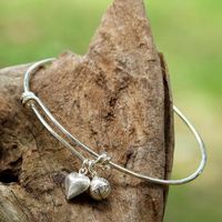 Sterling Silver Heart Shaped Charm Bracelet from Thailand 'Dimpled Heart' Item ID: 2669930247