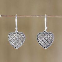 Sterling Silver Heart-Shaped Dangle Earrings from Thailand 'Textured Hearts' Item ID: 2669926608