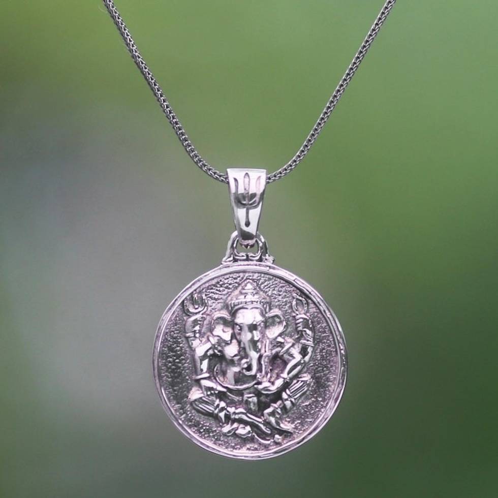 Sterling Silver Hindu Pendant Necklace 'Gracious Ganesha' Item ID: 2671699819