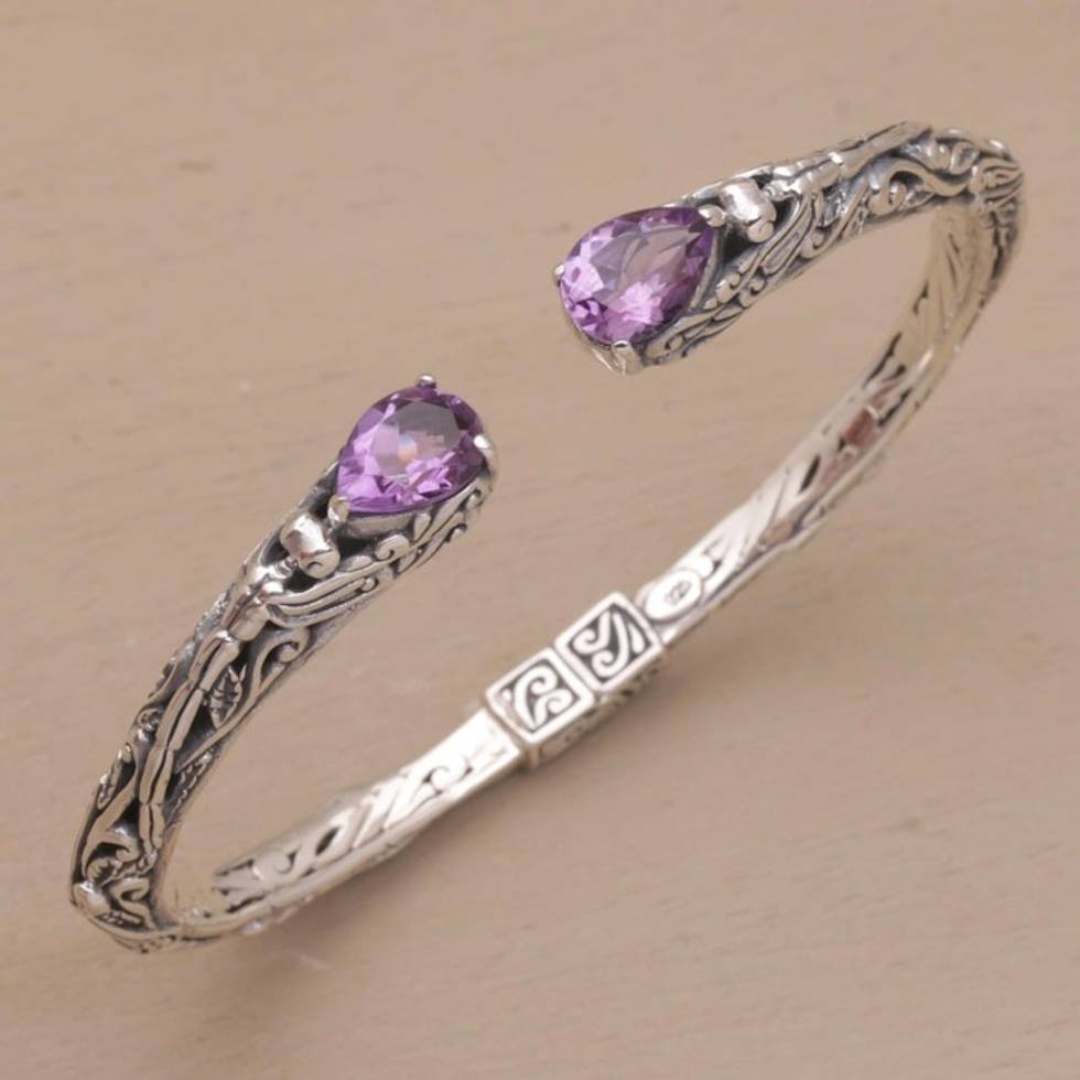 Sterling Silver Hinged Amethyst Cuff Bracelet from Bali 'Looking for You' Item ID: 2669923374