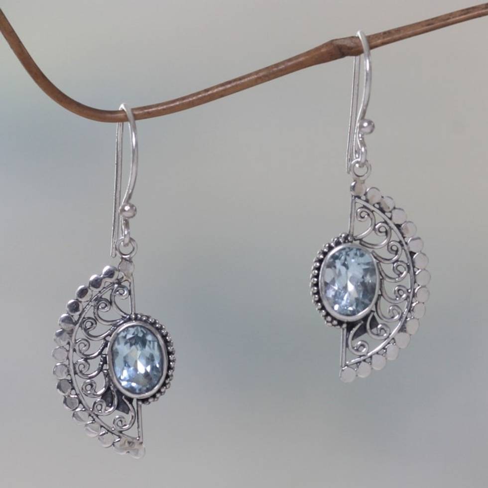 Sterling Silver Hook Earrings with Blue Topaz Gems 'Blue Eyes' Item ID: 2671702232