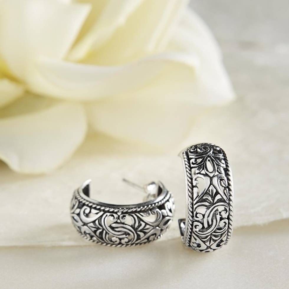 I bought these for my sister,she loves the intricate design. The pattern is beautifully carved out and flows gracefully all the way down the hoops