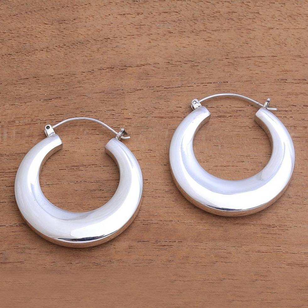 Sterling Silver Hoop Earrings Crafted in Bali 'Bold Glamour' Item ID: 2671481570