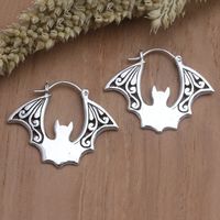 Sterling Silver Hoop Earrings with Bat Motif 'Night Flight' Item ID: 2670221879