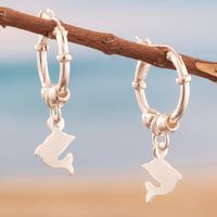 Sterling Silver Hoop Earrings with Dangling Dolphin Charms 'Happy Dolphin' Item ID: 2671698048