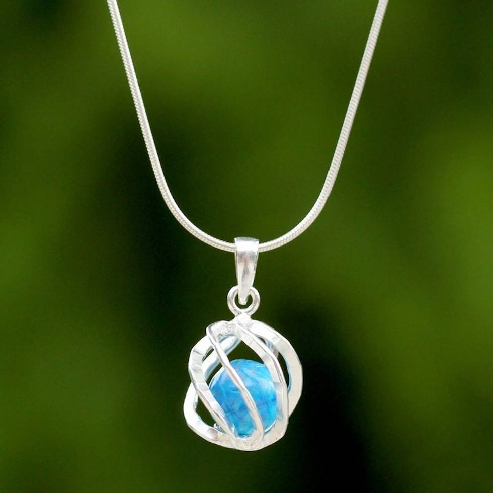 Sterling Silver Howlite Pendant Necklace from Thailand 'Blue Orb of Energy' Item ID: 2671802400
