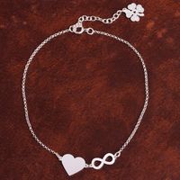 Sterling Silver Infinity Heart Anklet from Peru 'Love Infinite' Item ID: 2671690899