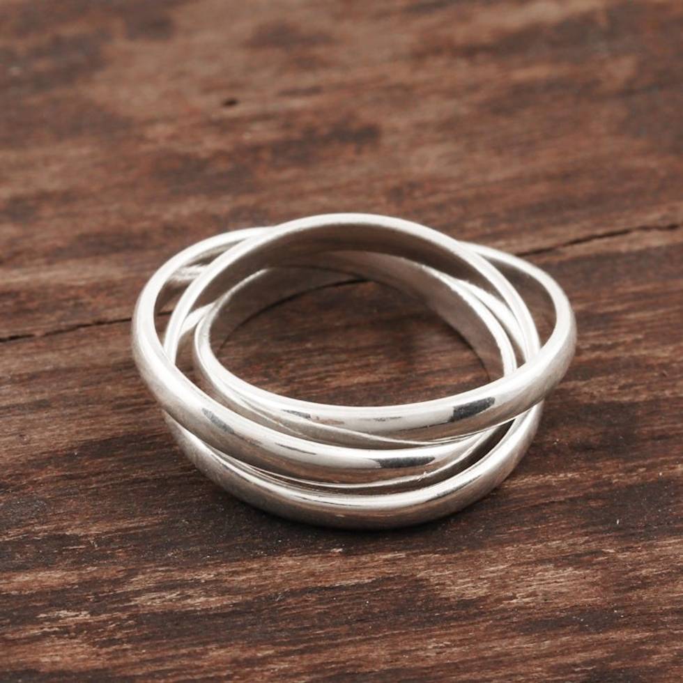 Sterling Silver Interlocked Band Ring Crafted in India 'Shiny Trio' Item ID: 2669923885