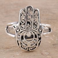 Sterling Silver Jali Hamsa Cocktail Ring from India 'Jali Hamsa' Item ID: 2669924293
