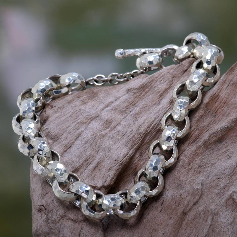 I love this bracelet, I bought it to complement the "Sterling silver station necklace Bamboo Link" necklace I purchased previously. Excellent craftsmanship, very beautiful. The only reason I did not give 5 stars is because it has come un-toggled and fallen off. I run the toggle through 2 of the links now instead of just one, and it's been fine.