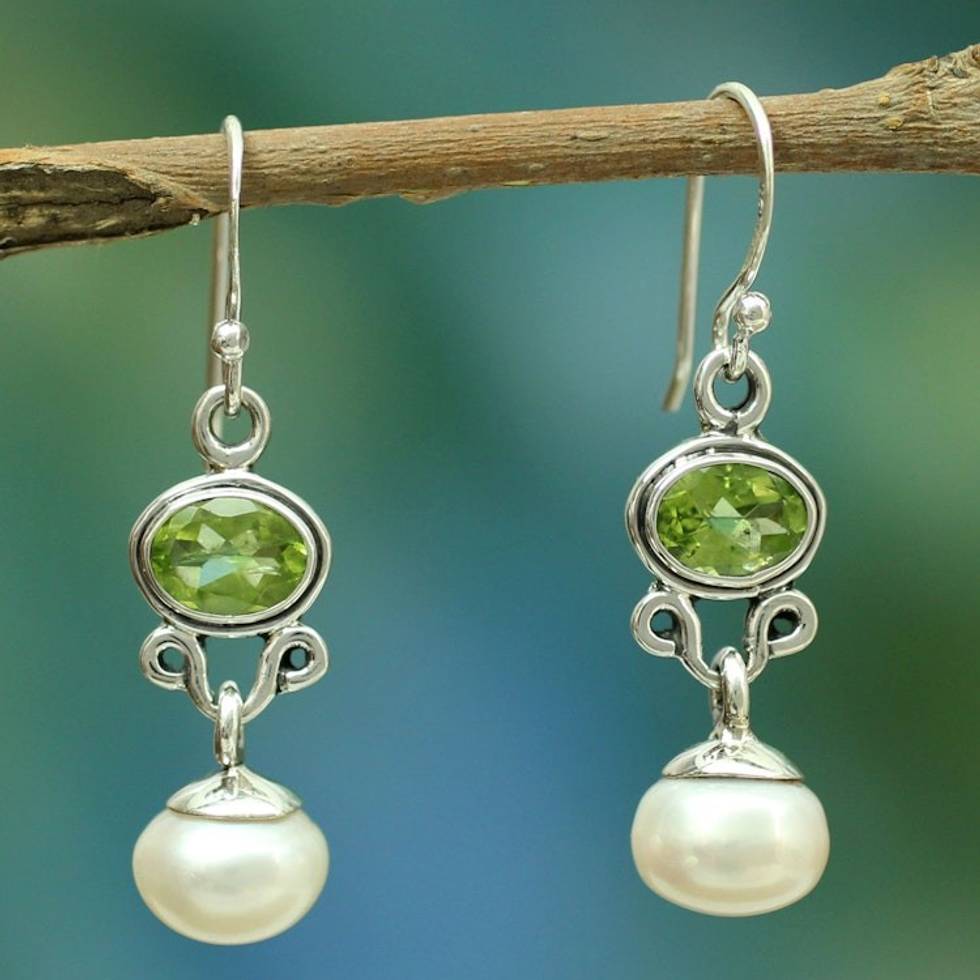 Sterling Silver Jewelry Pearl and Peridot Earrings 'Verdant Light' Item ID: 2671794443