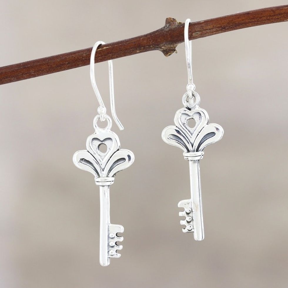 Sterling Silver Key Dangle Earrings from India 'Powerful Keys' Item ID: 2671789632