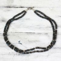 I am very particular about my necklaces. The stones of which they're made hold meaning for me. I was looking for a strong garnet necklace and wanted one that would lay just at the base of my throat. Well, the inner strand of this necklace lays exactly where I wanted while the outer one lays a bit lower, making quite a statement! The silver bead accents wake the whole piece up and keep it from bein... read more