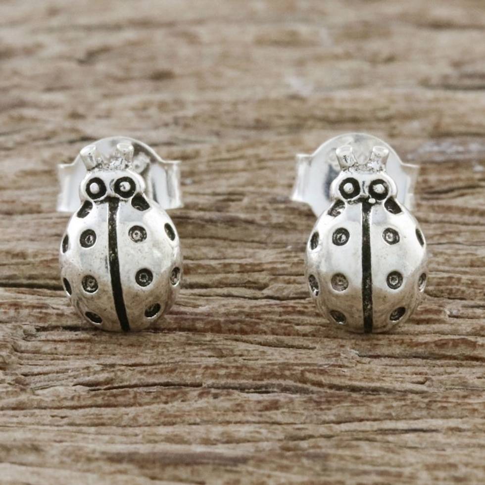 Sterling Silver Ladybug Stud Earrings from Thailand 'Cute Ladybugs' Item ID: 2669927174