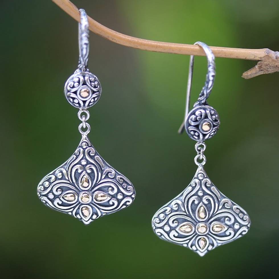 Sterling Silver Lantern Shaped Earrings with Gold Accents 'Genie Bottles' Item ID: 2671747611