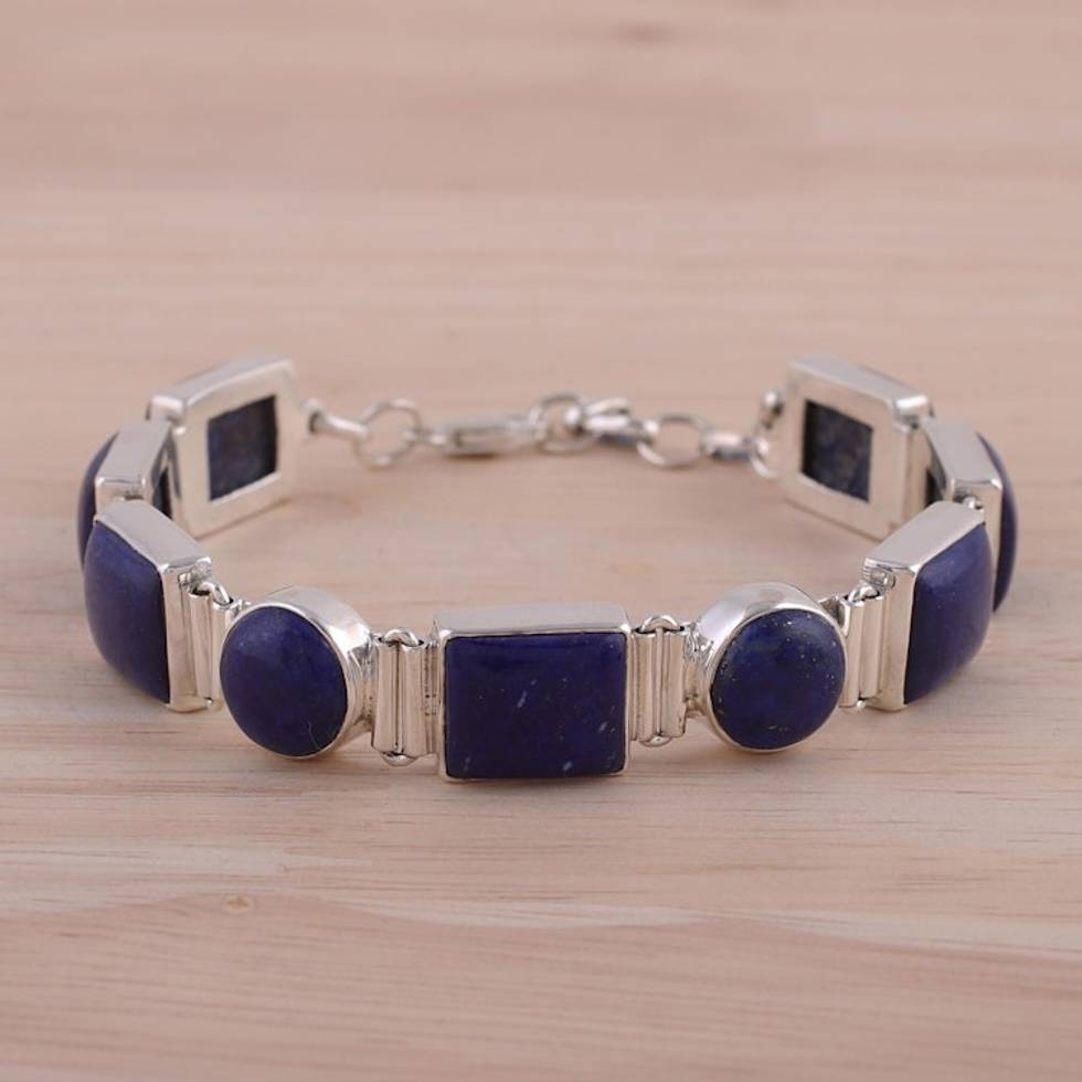 Sterling Silver Lapis Lazuli Bracelet Indian Jewelry 'Connected' Item ID: 2669924736