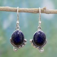 Sterling Silver Lapis Lazuli Dangle Earrings from India 'Indian Delight in Blue' Item ID: 2671793401
