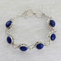 Sterling Silver Lapis Lazuli Link Bracelet from India 'Nighttime Glamour' Item ID: 2671621117