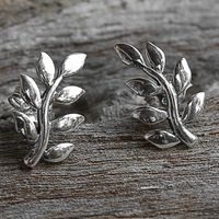 Sterling Silver Leaf Button Earrings from Thailand 'Peaceful Leaves' Item ID: 2669927997