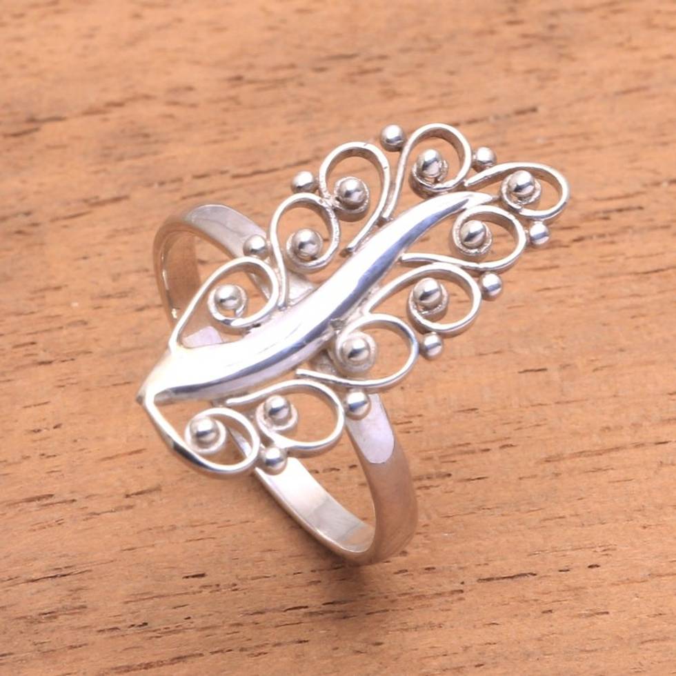 Sterling Silver Leaf Cocktail Ring from Bali 'Royal Leaf' Item ID: 2671736864