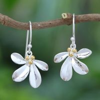 Sterling Silver Leaf Dangle Earrings with 18k Gold Accents 'Gold Enchanted Leaves' Item ID: 2671797994