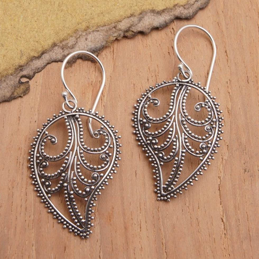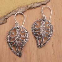 Sterling Silver Leaf Dangle Earrings with Openwork Accents 'Leaves of Fall' Item ID: 2671763429