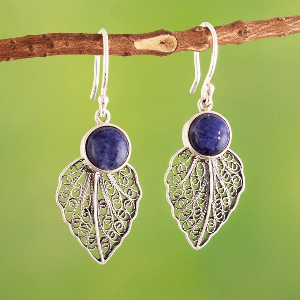 Sterling Silver Leaf Filigree Dangle Earrings with Sodalite 'Leaf in the Wind' Item ID: 2671697775
