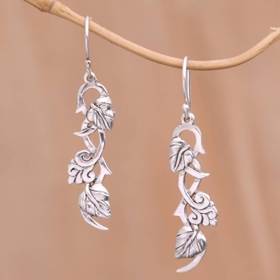 Sterling Silver Leafy Hope Vine Dangle Earrings 'Hope Vines' Item ID: 2671736680