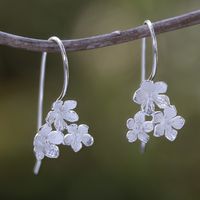 Sterling Silver Lily Drop Earrings Crafted in Bali 'Lily Kisses' Item ID: 2671821008