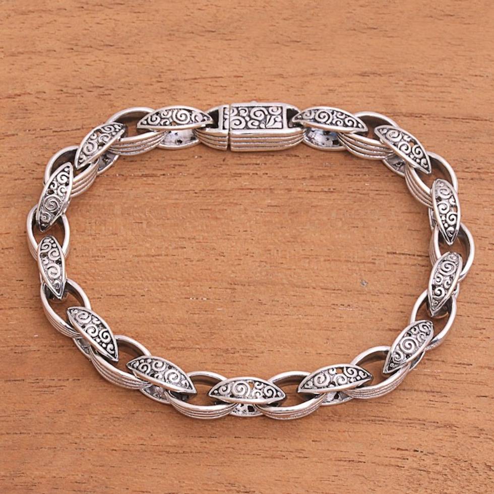 Sterling Silver Link Bracelet Crafted in Bali 'Buddha's Curls' Item ID: 2669920553