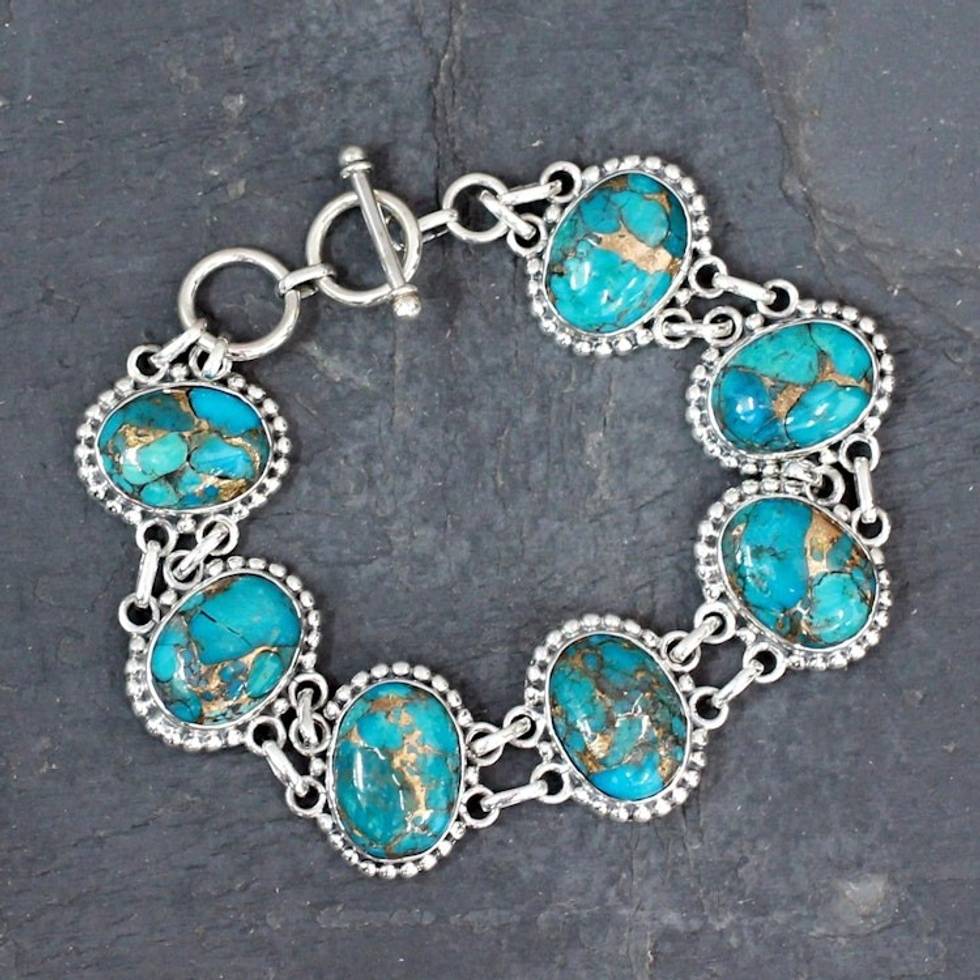 Exquisitely made. Turquoise and citrine gemstones set in flowing, beautifully designed sterling silver.
