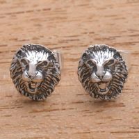 Sterling Silver Lion Stud Earrings from Bali 'Lion Mane' Item ID: 2676658962