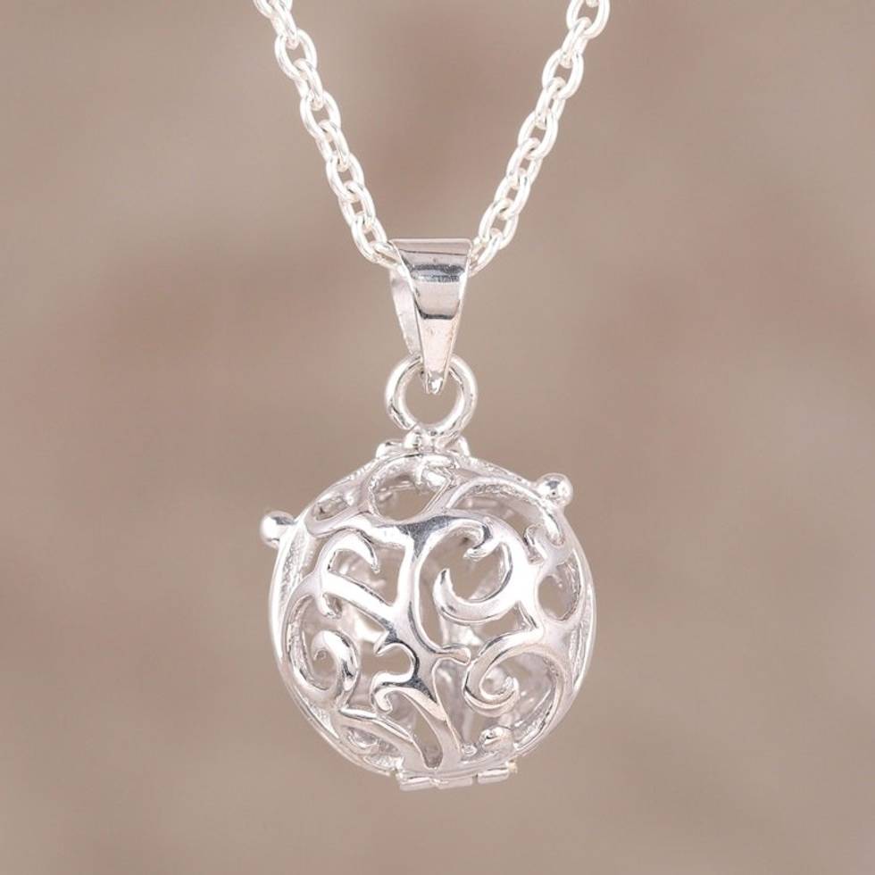 Sterling Silver Locket Necklace Crafted in India 'Globe of Vines' Item ID: 2671790973