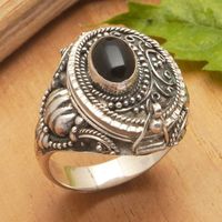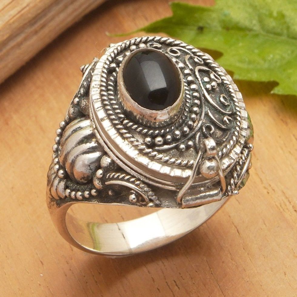 Sterling Silver Locket Ring with Black Onyx Stone from Bali 'Midnight Chic' Item ID: 2671764890
