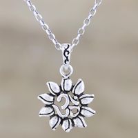 Sterling Silver Lotus and Om Pendant Necklace 'Lotus Om' Item ID: 2671787594