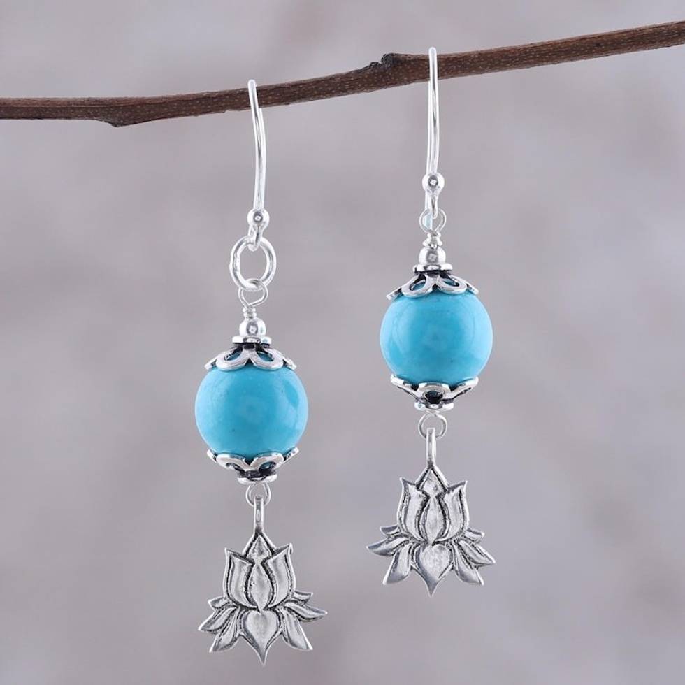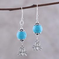 Sterling Silver Lotus Flower Dangle Earrings from India 'Lotus Passion' Item ID: 2671792737
