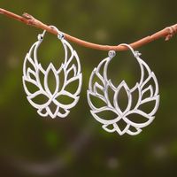 Sterling Silver Lotus Flower Hoop Earrings 1.5 inch 'Elegant Padma' Item ID: 2671821217