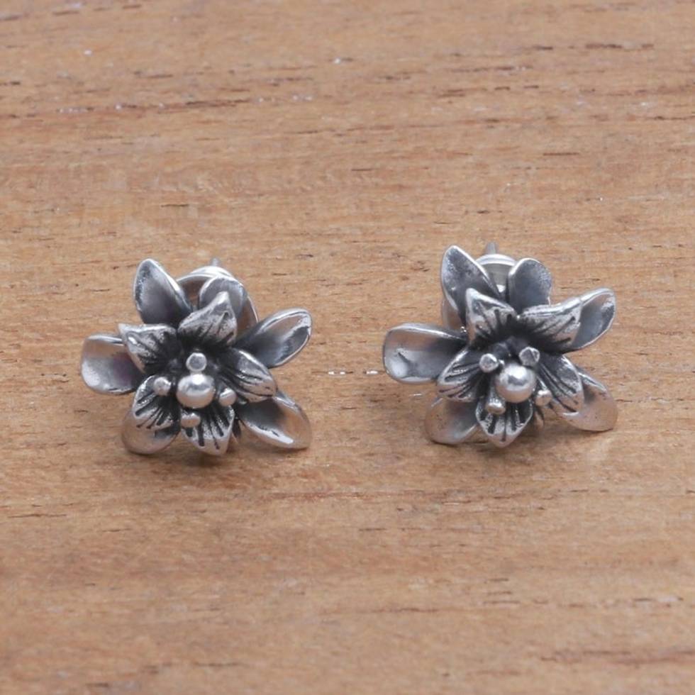 Sterling Silver Lotus Flower Stud Earrings from Bali 'Dreamy Lotus' Item ID: 2671736842