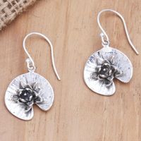 Sterling Silver Lotus-Themed Dangle Earrings 'Aquatic Beauty' Item ID: 2671747473