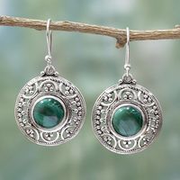 Sterling Silver Malachite Dangle Earrings from India 'Graceful Green' Item ID: 2671619643
