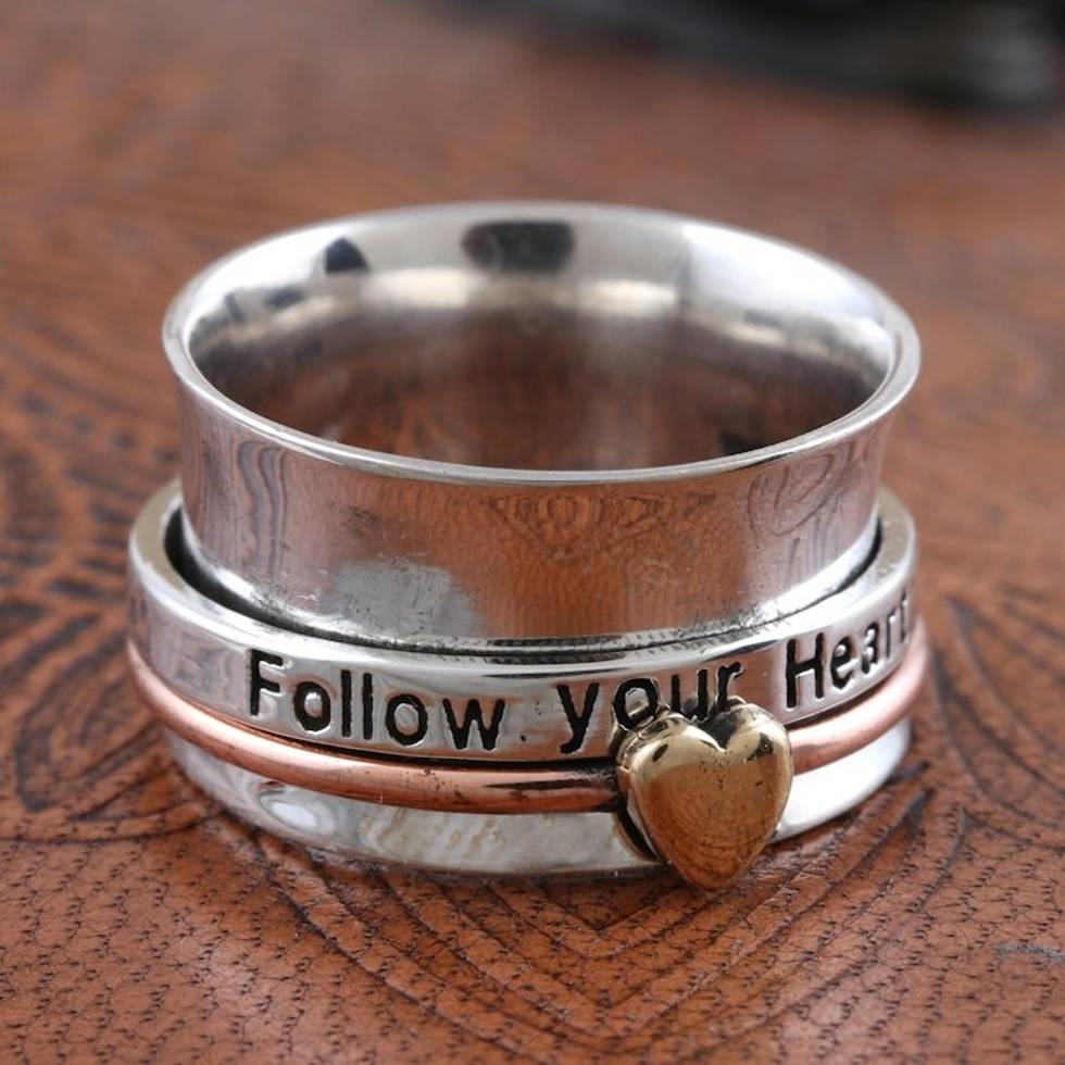 Sterling Silver Meditation Ring Follow Your Heart 'Message from the Heart' Item ID: 2669924246