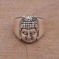 Sterling Silver Men's Buddha Band Ring from Bali 'Buddha's Influence' Item ID: 2676666720