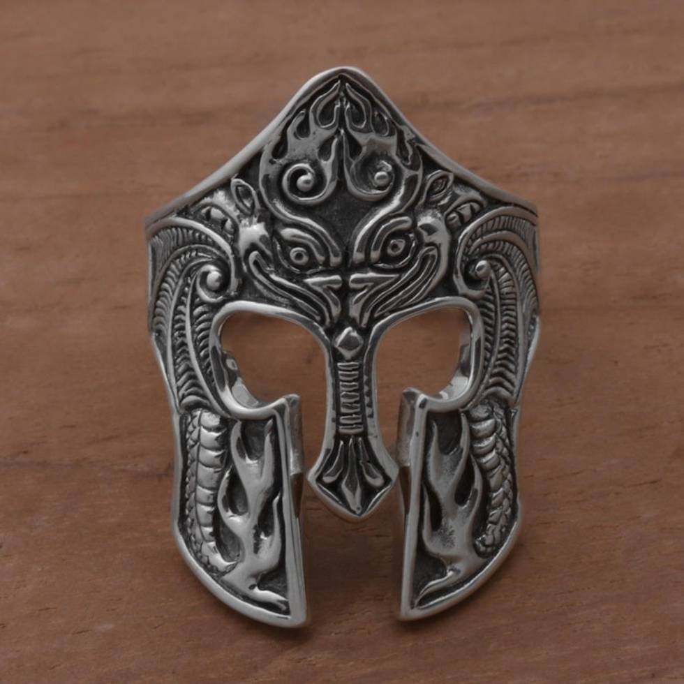 Sterling Silver Men's Dragon Balinese Warrior Ring 'Brawijaya Mask' Item ID: 2669922070