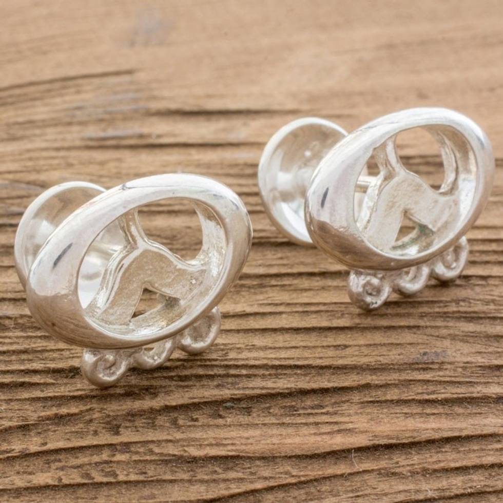 Sterling Silver Men's Mayan Cufflinks from Nicaragua 'Ultimate Ajmaq' Item ID: 2671780115
